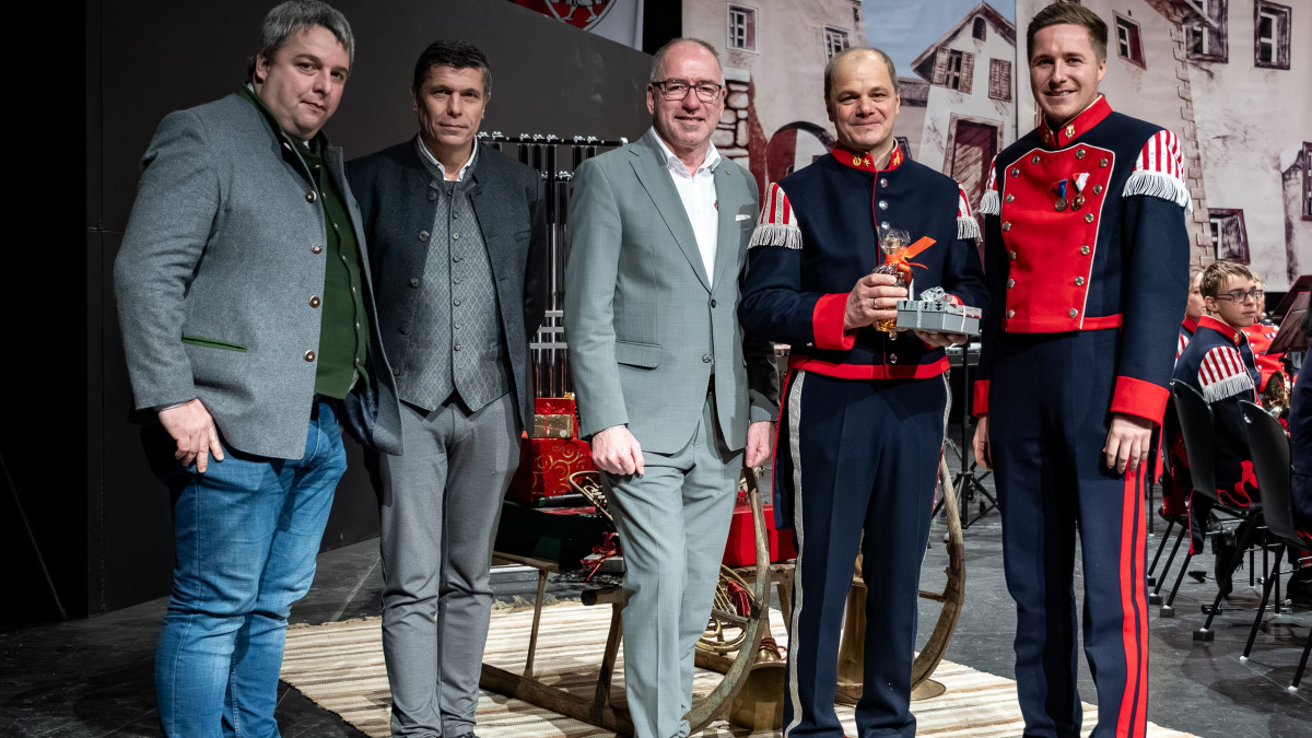 Die Bürgerkorpskapelle bedankte sich bei ihrem künstlerischen Leiter für die ersten 25 Jahre und hofft noch auf weitere schöne Weihnachtskonzerte mit ihm. Danke sagten auch Thomas Windhofer und Armin Keuschnigg v. Bezirksverband, für seine jahrelange Mitarbeit im Bezirksvorstand und als Bezirkskapellmeister. Besonders aber für sein Engagement um die Erstellung des neuen Notenmaterials „Festliche und sakrale Blasorchester-Klänge“, welches mittlerweile im gesamten Bundesland und darüber hinaus zur Anwendung kommt.