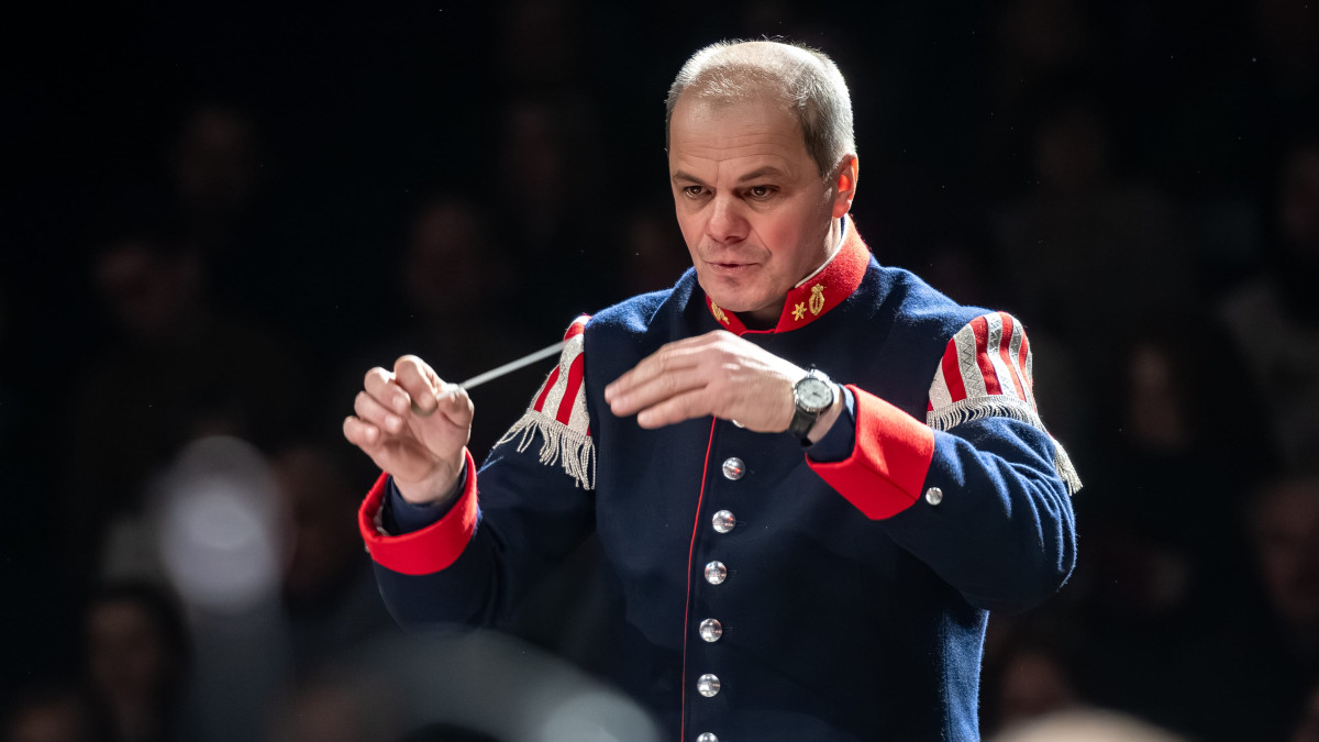 Nach der Polka Wenn Blech erklingt von Franz Watz lud Kapellmeister Hermann Seiwald das Publikum ein, Klänge und Geräusche mit Musik zu verbinden.