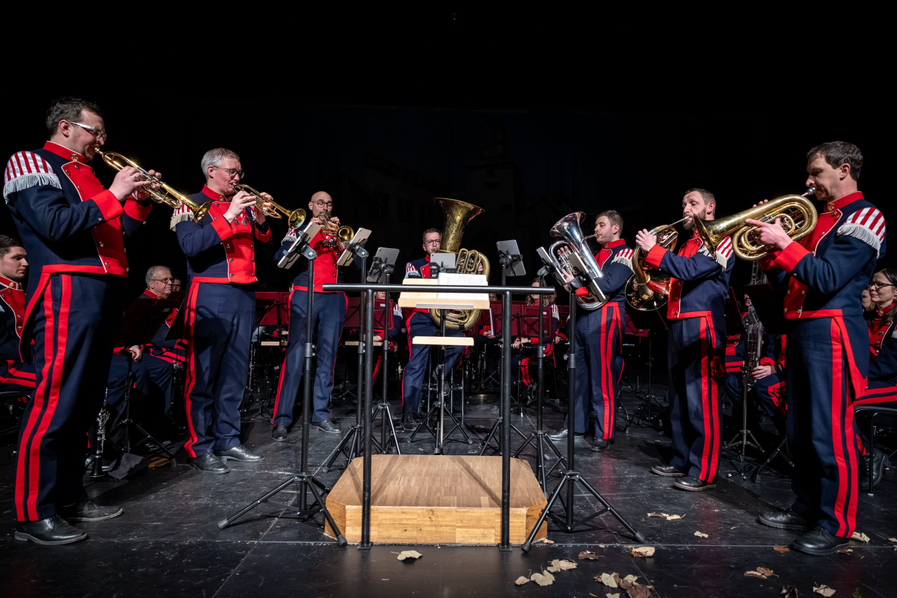 Zwischen den einzelnen Stücken der Blasmusik Suite hörte das Publikum einleitende Texte, welche von Finn Wallner aus dem Hintergrund vorgetragen wurden, dies sorgte für eine besonders spannende Atmosphäre.