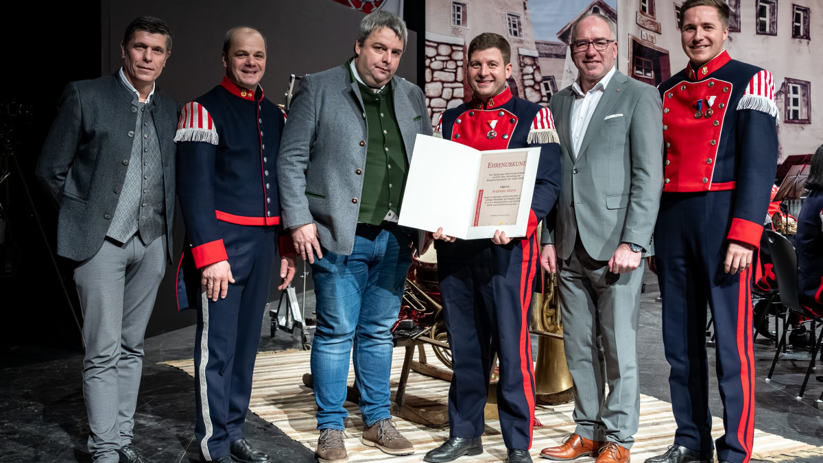 Das Ehrenzeichen in Silber erhielt Andreas Alfarè welcher, vor 25 Jahren als Musiker bei der Bürgerkorpskapelle begonnen hat und mittlerweile zu einer unverzichtbaren Stütze im Vereinsvorstand geworden ist.