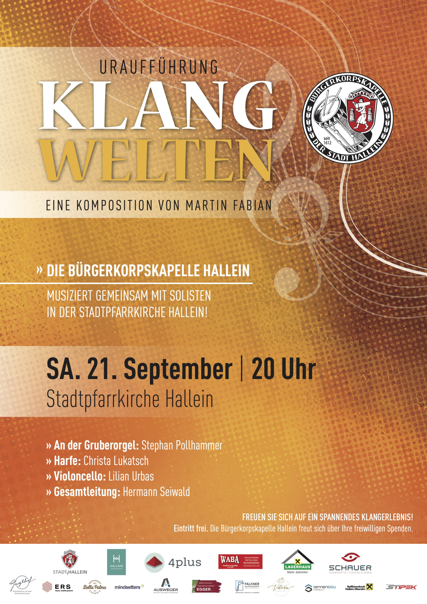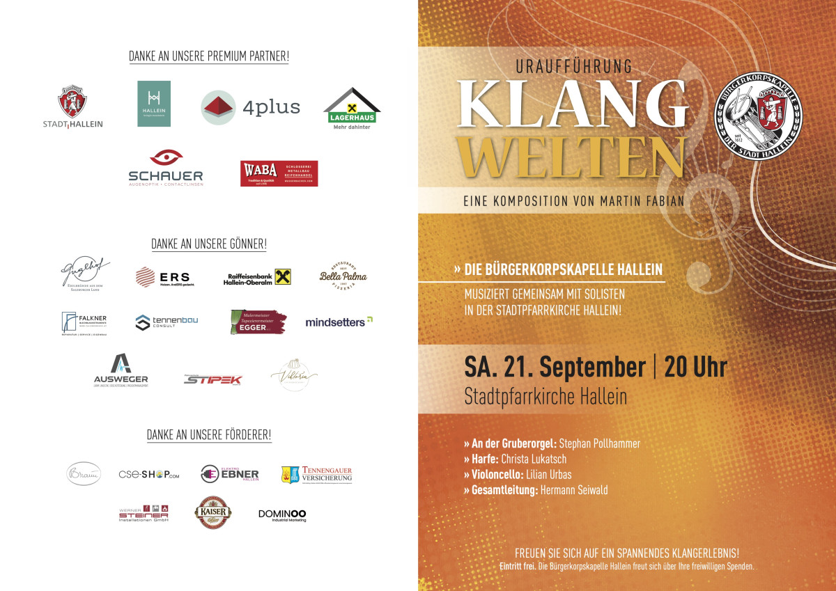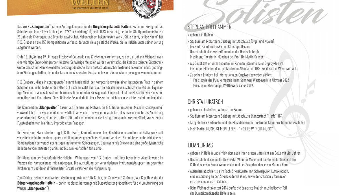 Eintritt frei. Die Bürgerkorpskapelle Hallein freut sich über Ihre freiwilligen Spenden.